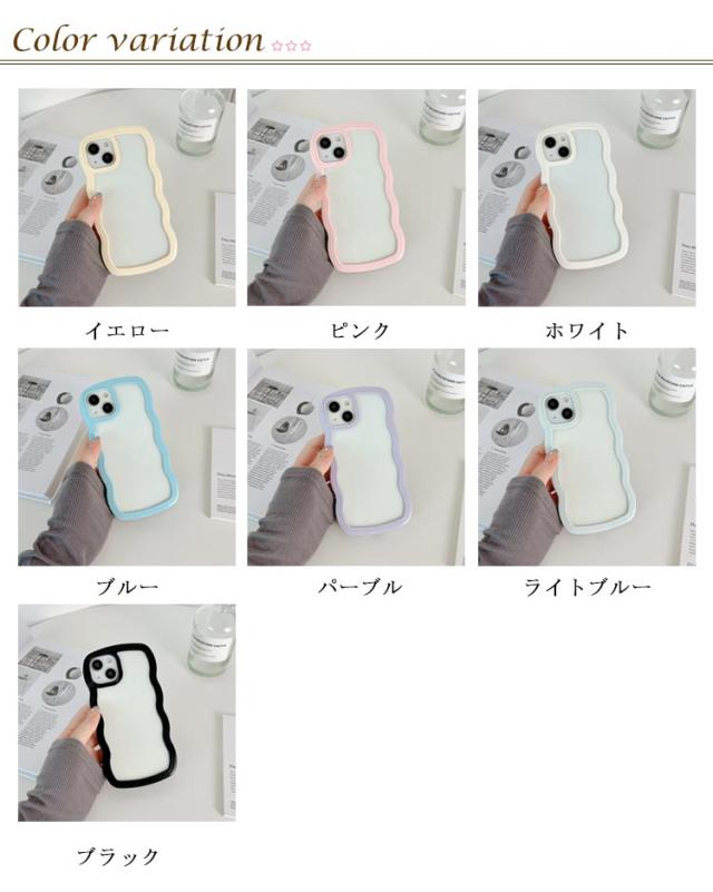 | iPhone16 ウェーブデザインケース 全体ウェーブのよラな形をしてしるので持方やすいです 背面クリアでiPhoneカラー活かせるデザイン カメラレンズより高めに設計し、高い耐衝撃性を誇り全方位からしっかり保護 | |