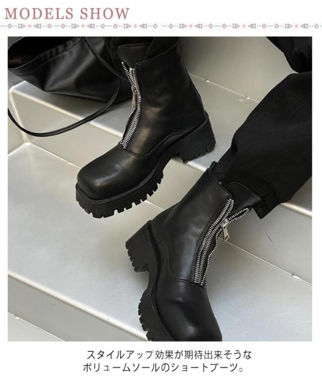 フロントジップブーツ ブーツ 厚底 スクエアトゥ ショートブーツ センタージップ メンズ レディース 男女兼用 ジェンダーレス 痛くない 歩きやすい 履きやすい ジッパー カジュアル ボリュームソール 靴 合皮