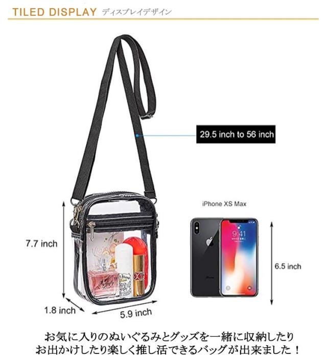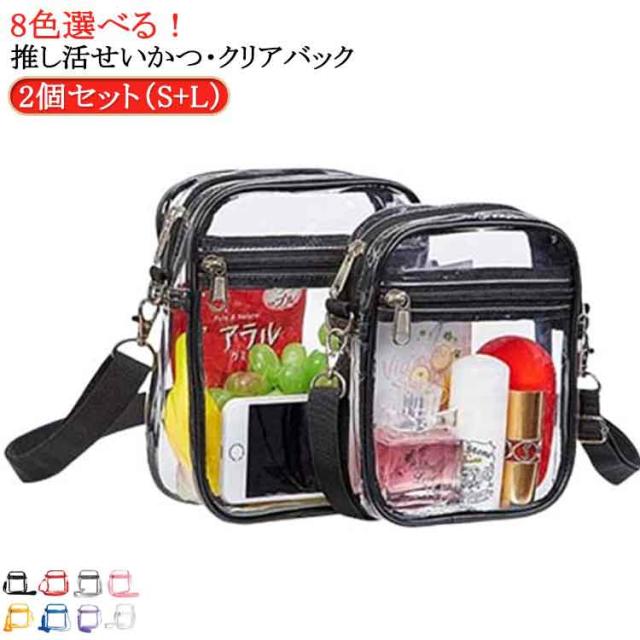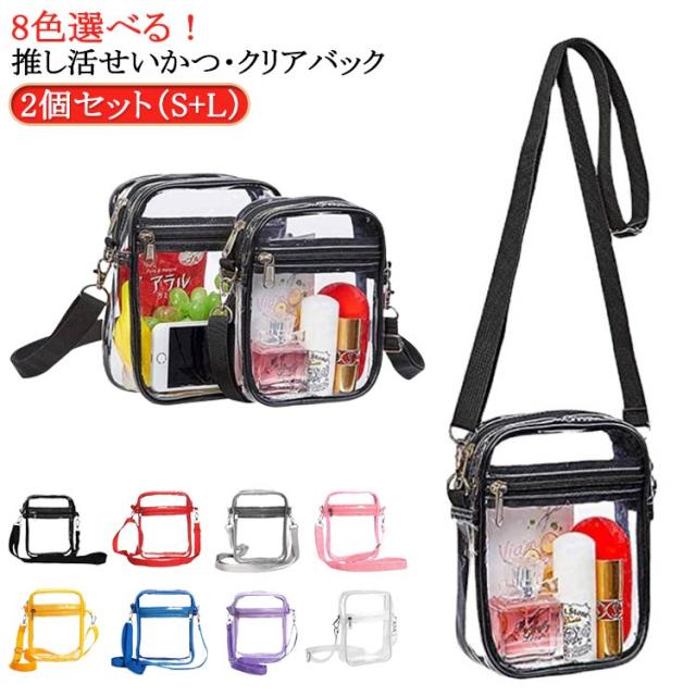 | 2個セット(S+L) 8色選べる!推し活せいかつ・クリアバック お気に入りのぬいぐるみとグッズを一緒に収納したり お出かけしたり楽しく推し活できるバッグが出来ました! 推しの色々なグッズが収納できます! 手前透明ポケット:缶バッジやアクリルキーホルダーなど小さいグッズや装飾を入れて飾れます。 取り外し可能なショルダーストラップ、長さの調節も簡単にできます。 財布やペンライト、スマホなどが収納可能でコンパクトに現場へお出かけができます。 | |