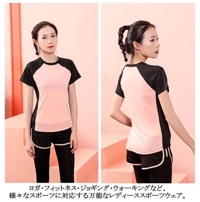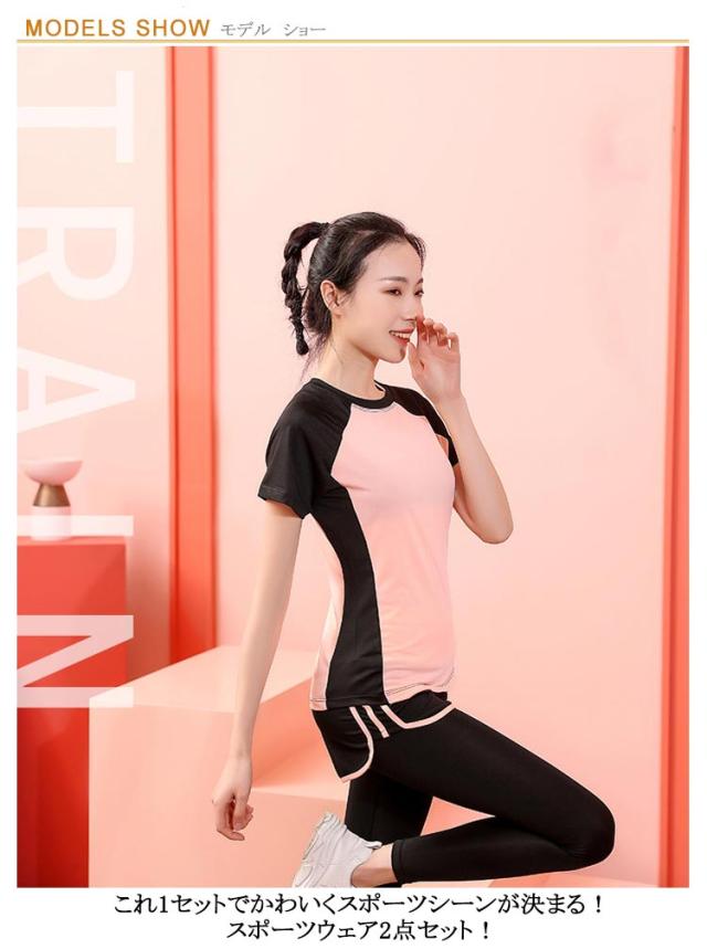 スポーツウェア レディース 上下セット パンツ フィットネスウェア 2点セット 半袖 半ズボン タンクトップ 長ズボン ロングパンツ ランニングウェア トレーニングウェア ヨガウェア 半袖 Tシャツ トップス レギンス ヨガ フィットネス スポーツ ウェア