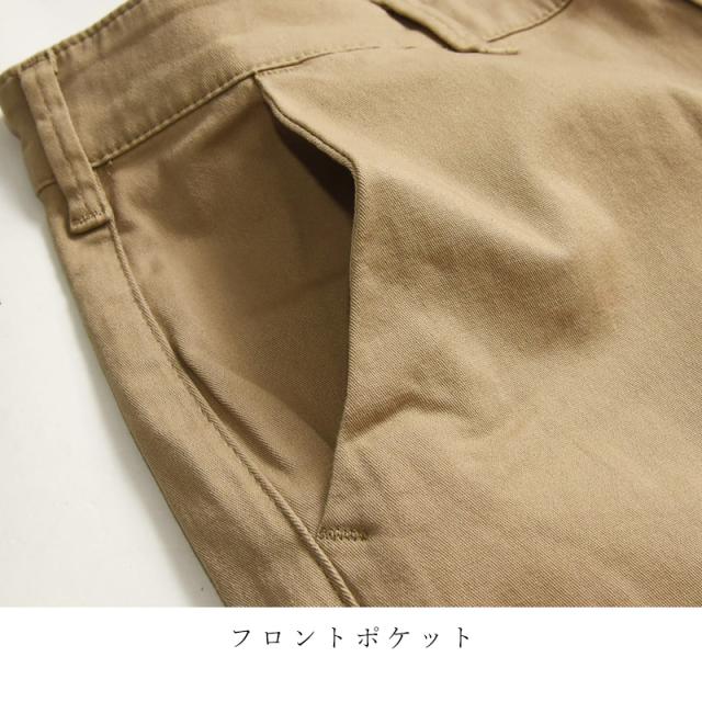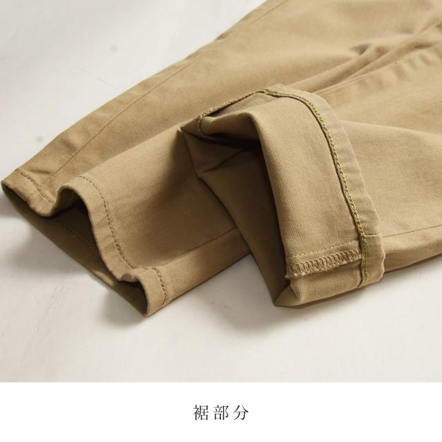 シルエットは、カーゴパンツの特徴である外付けのアコーディオンポケットからマチを無くし、すっきりスマートなカーゴパンツに仕上げました。 野暮ったさを抑えた、スタイリッシュなカーゴパンツです。 トレンド及びアメカジ寄りではなく、“キレイ目にはける普通のチノパンツ” ニーズから派生する キレイ目着こなし・幅広いシーンに対応できるカーゴパンツです。