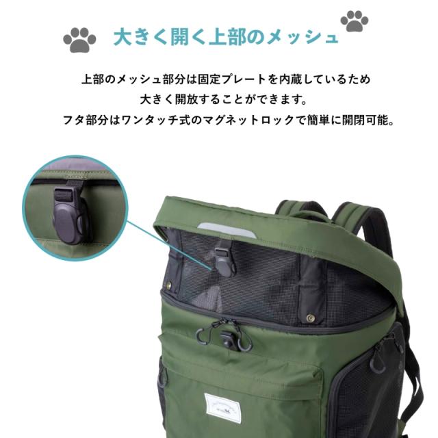 通気性に優れた設計、長時間でも疲れにくいショルダーベルト、そして中のペットの様子を確認できる小窓など、飼い主もペットも安心で快適に過ごせるよう細部にまでこだわりました。