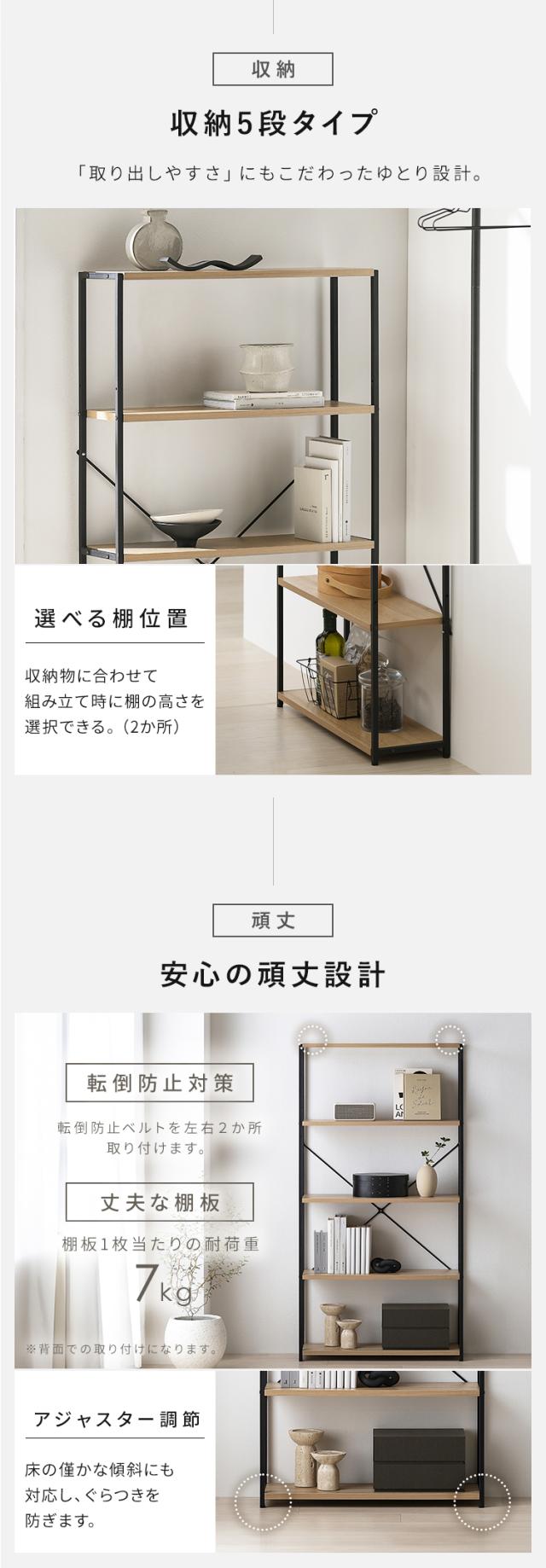 2段目と4段目の棚は高さが変えられるので、収納の幅が広がります。