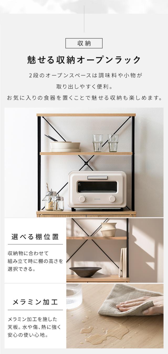 2段のオープンスペースは調味料や小物が取り出しやすく便利。
