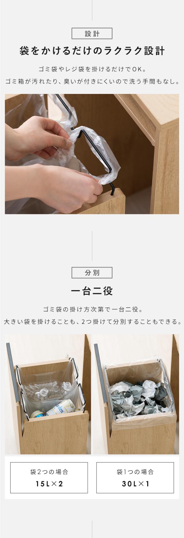 ゴミ箱に見えない、隠せる収納で生活感をなくし、スタイリッシュに。