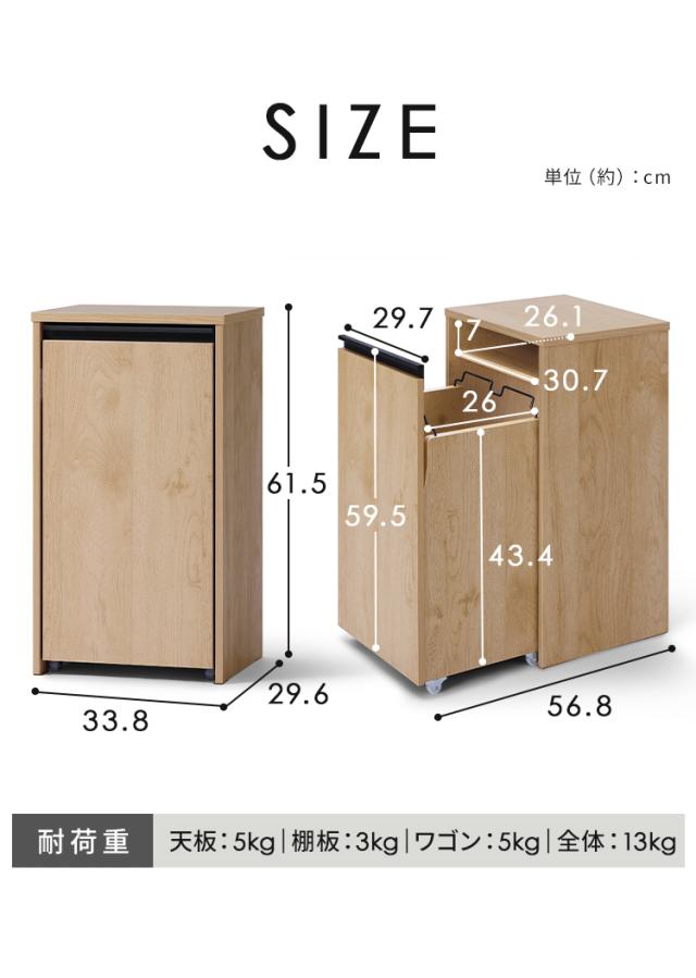 ワゴン内にはゴミ袋を収納できる棚板付き。
