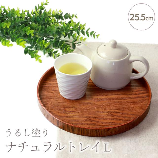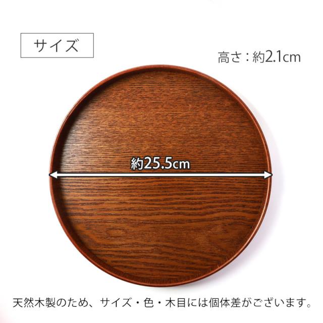 お盆 木製 丸盆 漆塗り 25.5cm トレー ナチュラル おしゃれ おぼん シンプル トレイ 天然木製 丸形 円 モダン 和風 木目 ブラウン うるし塗り おうちカフェ 配膳 来客時 おもてなし