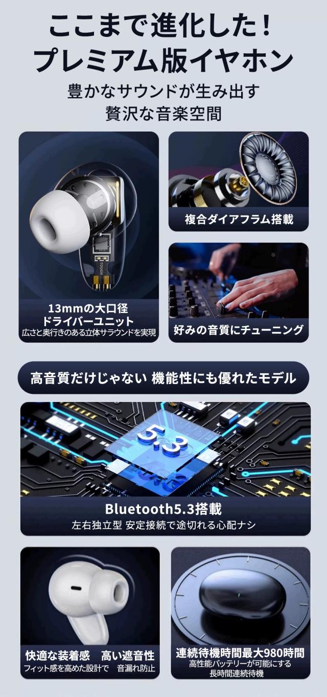プレミアム版Bluetoosh5.3ワイヤレスイヤホン