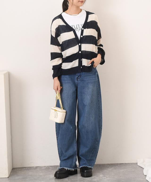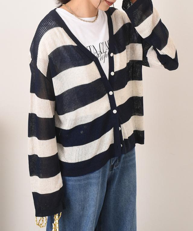 ●ナチュラルな風合いのボーダー柄カーディガン