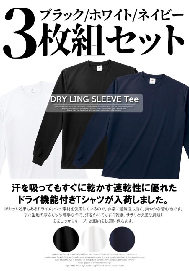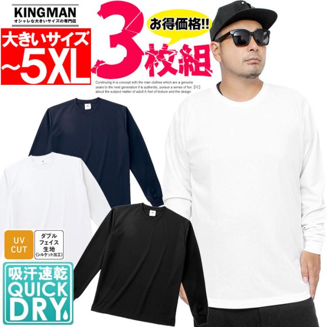 【3枚セット】送料無料 3枚組 長袖 Tシャツ メンズ 大きいサイズ 吸汗速乾 ファイバードライ UVカット 無地 クルーネック カットソー ロングTシャツ ロンT 長袖Tシャツ 吸水速乾 白 黒 スポーツ トレーニングウェア ルームウェア 部屋着 父の日 ギフト