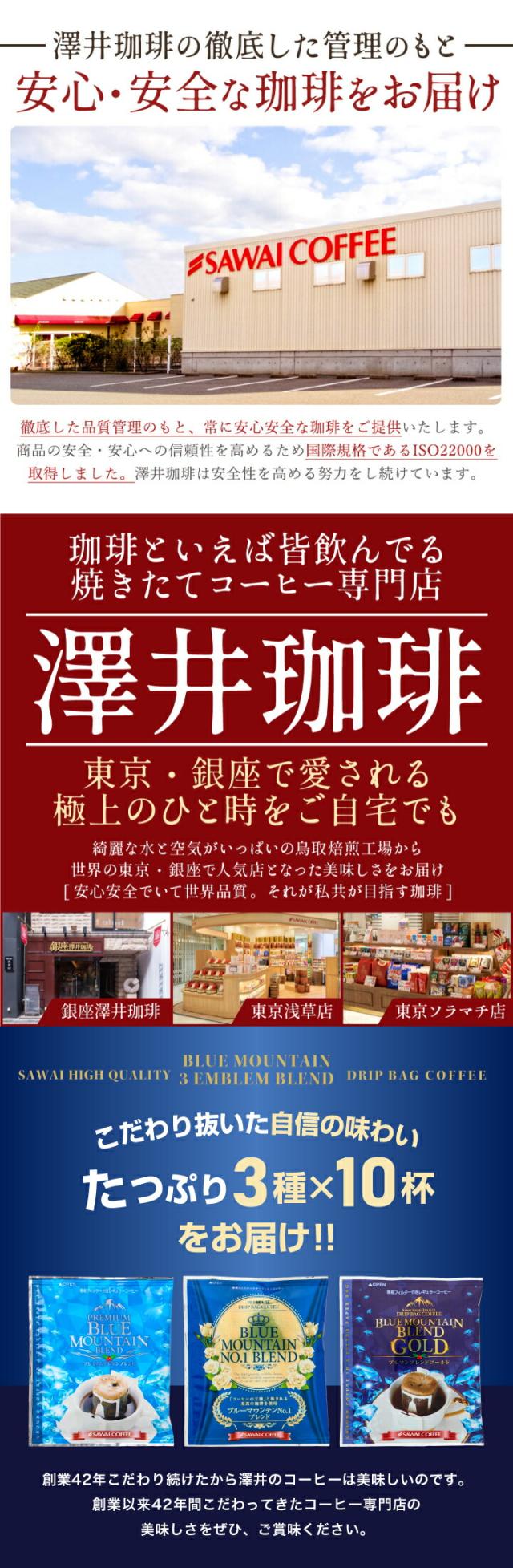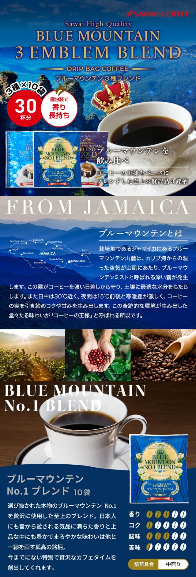 3種 30袋 個包装8g×10袋 ブルーマウンテン 飲み比べ セット ブルマンブレンドゴールド ブルマンNo.1ブレンド プレミアムブルマンブレンド ドリップコーヒー 30杯分 ドリップパック 送料無料 ドリップバッグ 福袋 澤井珈琲