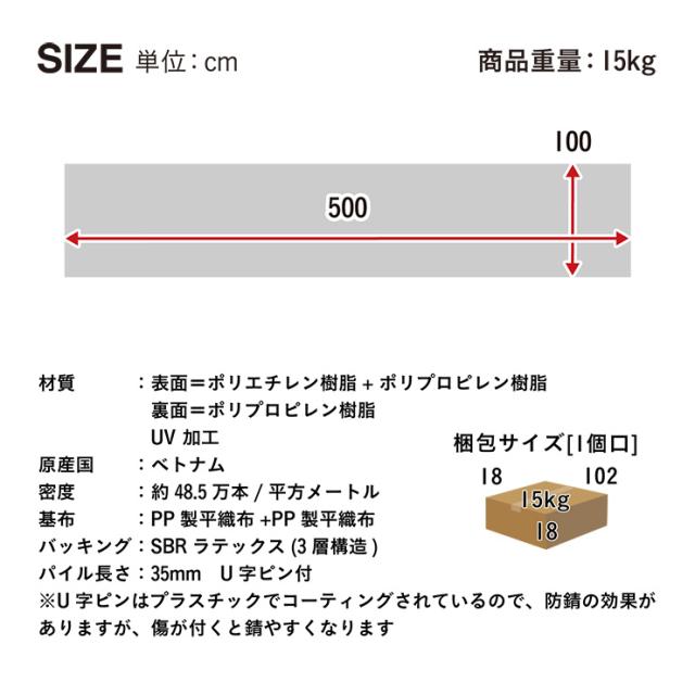 W500cm x D100cm 芝丈35mm
