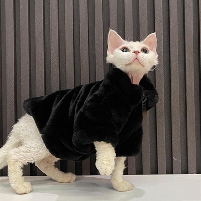 「送料無料」猫服 猫ウェア ペット服 ネコ スタンドカラーコート ファスナーコート スフィンクス デボンレックス ふわふわ 柔らかい 保温性よい 秋 冬 厚手 防寒 かわいい すごく暖かい 綿服 冬対策 猫服だけ