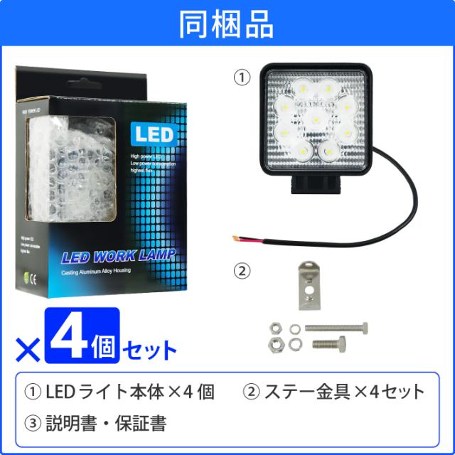【4個】LED投光器 27W led 作業灯 12v 24v 広角 ledライト ワークライト led作業灯 前照灯 LED集魚灯 角型 バックランプ デッキライト 投光器 led 屋外 防水