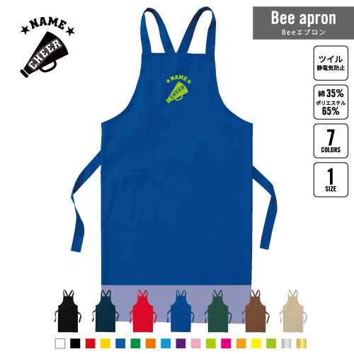 チアメガホン 名入れBeeエプロン お名前入りエプロン ネーム入れ 企業 ショップ 出店 文化祭 学園祭 スタッフ 店舗 飲食店 喫茶店 居酒屋 美容院 作業 ワークエプロン 母の日 プレゼント CHEER