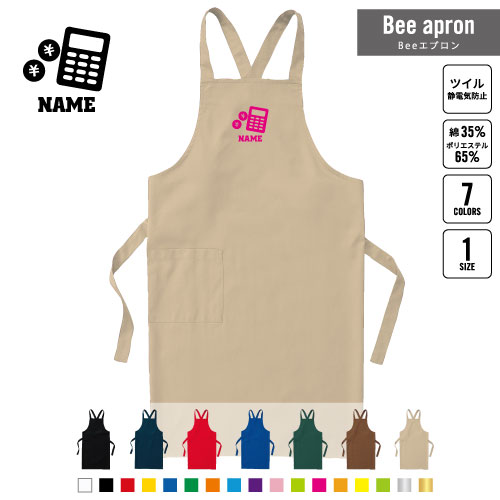 銀行3 名入れBeeエプロン お名前入りエプロン ネーム入れ 企業 ショップ 出店 文化祭 学園祭 スタッフ 店舗 飲食店 喫茶店 居酒屋 美容院 作業 ワークエプロン 母の日 プレゼント バンク 電卓