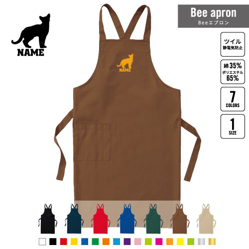 ロシアンブルー 名入れBeeエプロン お名前入りエプロン ネーム入れ 企業 ショップ 出店 文化祭 学園祭 スタッフ 店舗 飲食店 喫茶店 居酒屋 美容院 作業 ワークエプロン 母の日 プレゼント 猫 ネコ ねこ キャット ペット