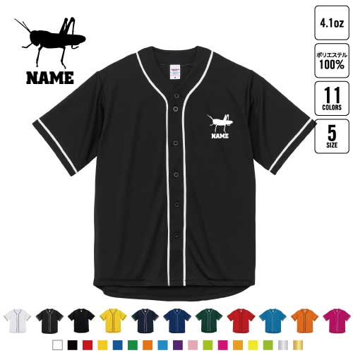 バッタ 名入れベースボールシャツ BBシャツ レイヤードシャツ 野球 チームウェア 昆虫 B系 ストリート系