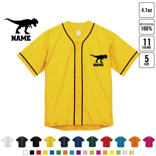 ティラノサウルス1 名入れベースボールシャツ BBシャツ レイヤードシャツ 野球 チームウェア 恐竜 化石 肉食 草食 雑食 海 陸 B系 ストリート系