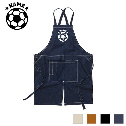 サッカーボール 名入れエプロン ウォッシュキャンバス ツイルエプロン クロスタイプ ワークエプロン デニム インディゴ キャメル ブラック ナチュラル カフェエプロン 飲食店 喫茶店 作業用 母の日ギフト 店舗スタッフ