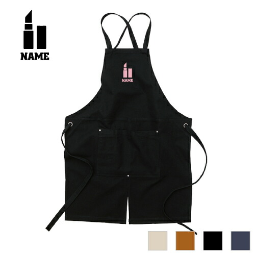 メイクアップアーティスト1 名入れエプロン ウォッシュキャンバス ワークエプロン デニム インディゴ キャメル ブラック ナチュラル カフェエプロン 口紅 リップ メイク 飲食店 喫茶店 作業用 母の日ギフト 店舗スタッフ