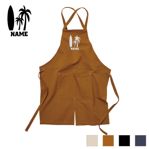 サーファー 名入れエプロン ウォッシュキャンバス ワークエプロン デニム インディゴ キャメル ブラック ナチュラル カフェエプロン 波乗り ボード 夏 飲食店 喫茶店 作業用 母の日ギフト 店舗スタッフ