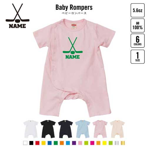 アイスホッケー2 名入れベビーカバーオール ロンパース 半袖 出産祝い ベビー服 新生児 80サイズ 綿100% 下着 肌着 パジャマ カバーオール ボディスーツ ウインター 氷 ゴール