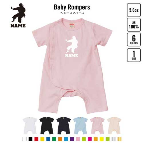 空手3 名入れベビーカバーオール ロンパース 半袖 出産祝い ベビー服 新生児 80サイズ 綿100% 下着 肌着 パジャマ カバーオール ボディスーツ 帯 型 組手