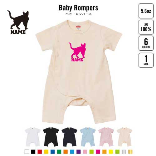 デボンレックス 名入れベビーカバーオール ロンパース 半袖 出産祝い ベビー服 新生児 80サイズ 綿100% 下着 肌着 パジャマ カバーオール ボディスーツ 猫 ネコ ねこ キャット ペット