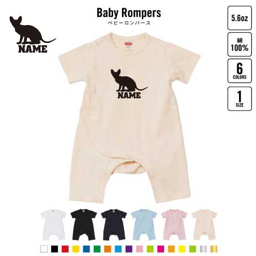 ドンスコイ 名入れベビーカバーオール ロンパース 半袖 出産祝い ベビー服 新生児 80サイズ 綿100% 下着 肌着 パジャマ カバーオール ボディスーツ 猫 ネコ ねこ キャット ペット