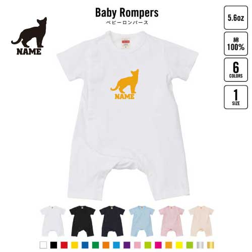 ロシアンブルー 名入れベビーカバーオール ロンパース 半袖 出産祝い ベビー服 新生児 80サイズ 綿100% 下着 肌着 パジャマ カバーオール ボディスーツ 猫 ネコ ねこ キャット ペット