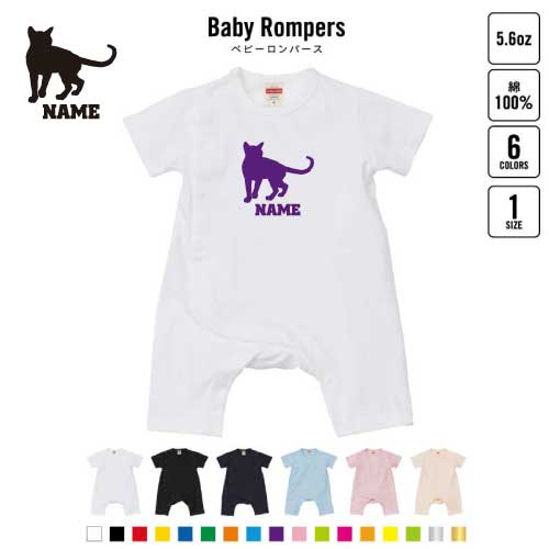 トンキニーズ 名入れベビーカバーオール ロンパース 半袖 出産祝い ベビー服 新生児 80サイズ 綿100% 下着 肌着 パジャマ カバーオール ボディスーツ 猫 ネコ ねこ キャット ペット