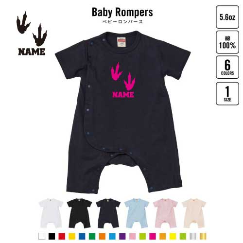足跡1 名入れベビーカバーオール ロンパース 半袖 出産祝い ベビー服 新生児 80サイズ 綿100% 下着 肌着 パジャマ カバーオール ボディスーツ 恐竜 化石 肉食 草食 雑食 海 陸
