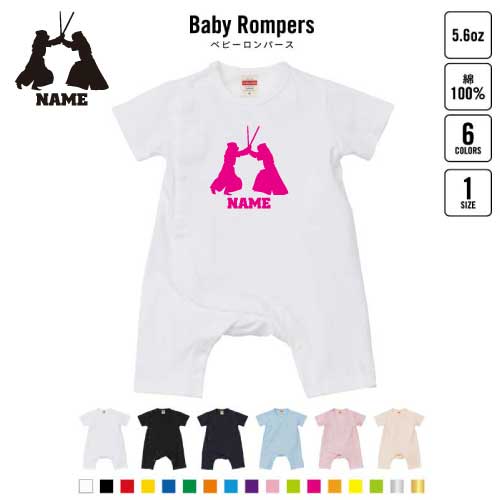 「剣道」名入れベビーカバーオール ロンパース 半袖 出産祝い ベビー服 新生児 80サイズ 綿100% 下着 肌着 パジャマ カバーオール ボディスーツ Pre-mo 名前入り おなまえ