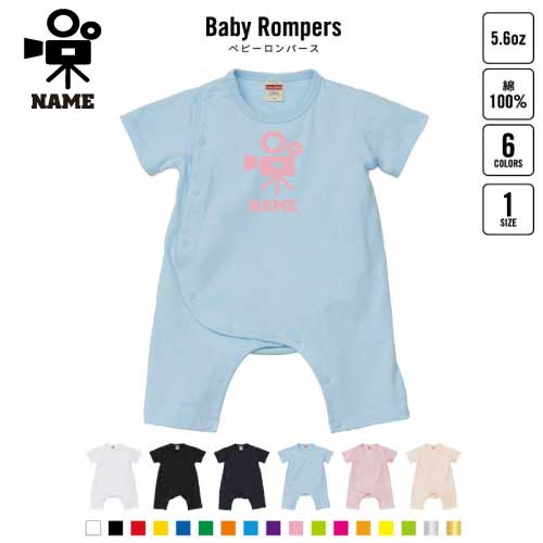 TV業界1 名入れベビーカバーオール ロンパース 半袖 出産祝い ベビー服 新生児 80サイズ 綿100% 下着 肌着 パジャマ カバーオール ボディスーツ 撮影 ビデオ カメラマン 監督
