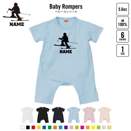「クロスカントリー」名入れベビーカバーオール ロンパース 半袖 出産祝い ベビー服 新生児 80サイズ 綿100% 下着 肌着 パジャマ カバーオール ボディスーツ ベビースーツ ノルディック 冬季五輪名前入り おなまえ