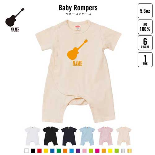 「アコースティックギター」名入れベビーカバーオール ロンパース 半袖 出産祝い ベビー服 新生児 80サイズ 綿100% 下着 肌着 パジャマ カバーオール 育児 Pre-mo アコギ フォーク名前入り おなまえ