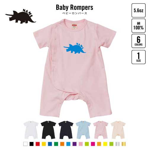 「トリケラトプス」名入れベビーカバーオール ロンパース/男の子 女の子 おしゃれ ベビー服 80サイズ 出産祝い 綿100% お名前入りギフト キッズサイズ 名前入り おなまえ