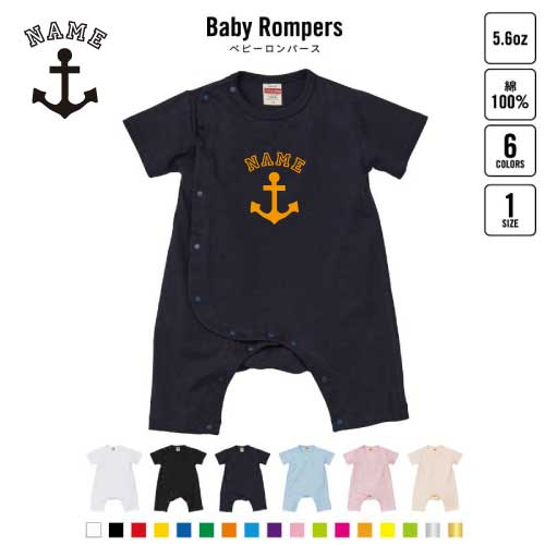 「アンカーマーク」名入れベビーカバーオール ロンパース/男の子 女の子 おしゃれ ベビー服 80サイズ 出産祝い 綿100% お名前入りギフト キッズサイズ ネコポス発送可名前入り おなまえ