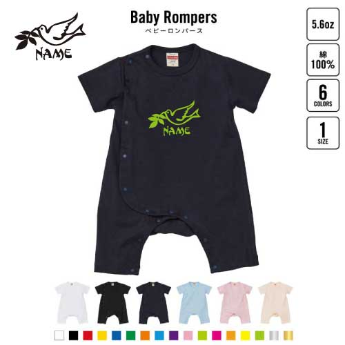 「BIRD(鳥)」名入れベビーカバーオール ロンパース/男の子 女の子 おしゃれ ベビー服 80サイズ 出産祝い 綿100% お名前入りギフト キッズサイズ 名前入り おなまえ