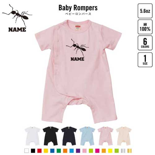 「アリ」名入れベビーカバーオール ロンパース 半袖 出産祝い お名前入りギフト 下着 肌着 パジャマ カバーオール ボディスーツ ベビースーツ 育児 Pre-mo 新生児 名前入り おなまえアイテム 昆虫