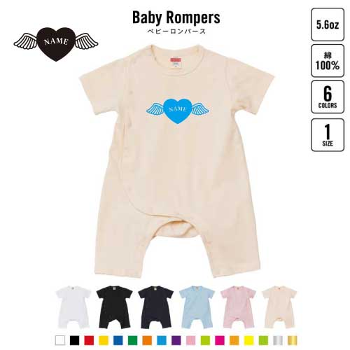 「エンジェルハート」名入れベビーカバーオール ロンパース/男の子 女の子 おしゃれ ベビー服 80サイズ 出産祝い 綿100% お名前入りギフト キッズサイズ 名前入り おなまえ