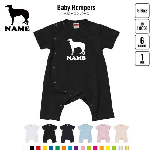「ボルゾイ」名入れベビーカバーオール ロンパース 犬種別シルエット 半袖 出産祝い ベビー服 新生児 80サイズ 綿100% 肌着 パジャマ カバーオール ボディスーツ ネコポス発送可【namerpb】名前入り おなまえ
