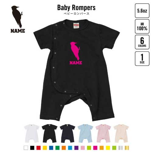 「キツツキ」名入れベビーカバーオール ロンパース 半袖 出産祝い お名前入りギフト 下着 肌着 パジャマ カバーオール ボディスーツ ベビースーツ 育児 Pre-mo 新生児 名前入り おなまえアイテム 啄木鳥 ケラ Woodpecker