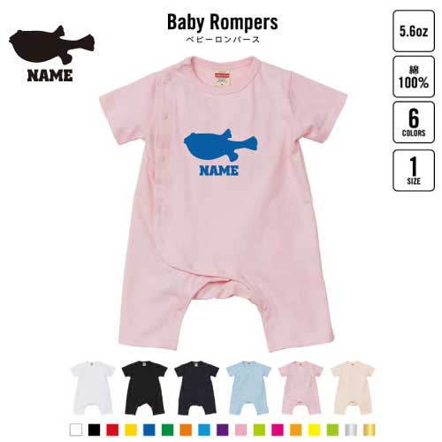「フグ」名入れベビーカバーオール ロンパース 半袖 出産祝い お名前入りギフト 下着 肌着 パジャマ カバーオール ボディスーツ ベビースーツ 育児 Pre-mo 新生児 名前入り おなまえアイテム 河豚 鰒 ? ? ? ? ふぐ刺し