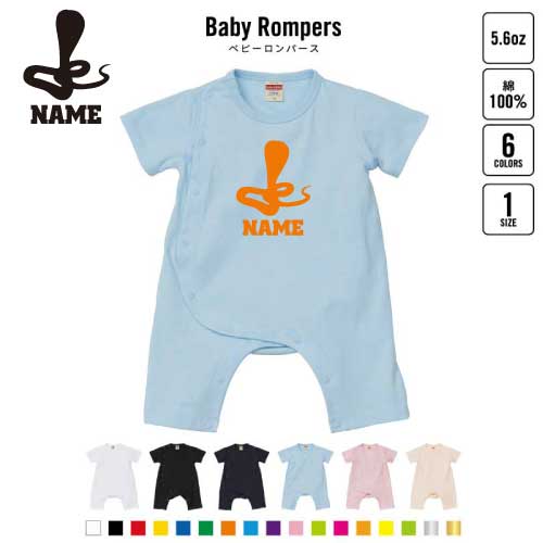 「コブラ」名入れベビーカバーオール ロンパース 半袖 出産祝い ベビー服 新生児 80サイズ 綿100% 下着 肌着 パジャマ カバーオール ボディスーツ Pre-mo 名前入り 蛇 へび Cobra 爬虫類