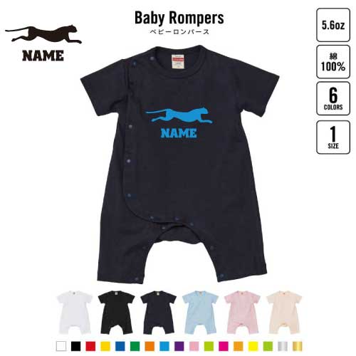 「チーター」名入れベビーカバーオール ロンパース 半袖 出産祝い ベビー服 新生児 80サイズ 綿100% 下着 肌着 パジャマ カバーオール ボディスーツ Pre-mo 名前入り Cheetah