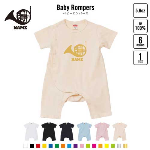 「ホルン」名入れベビーカバーオール ロンパース 半袖 出産祝い お名前入りギフト 下着 肌着 パジャマ カバーオール ボディスーツ ベビースーツ 育児 Pre-mo 新生児 名前入り おなまえアイテム 楽器 吹奏楽 管楽器 プレゼント グッズ 卒業記念品 卒団祝い 卒部祝い