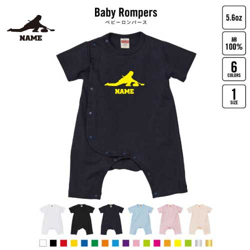 「カーリング1」名入れベビーカバーオール ロンパース 半袖 出産祝い ベビー服 新生児 80サイズ 綿100% 下着 肌着 パジャマ カバーオール ボディスーツ Pre-mo 名前入り おなまえ