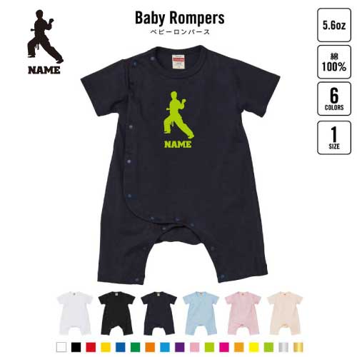 「空手1」名入れベビーカバーオール ロンパース 半袖 出産祝い ベビー服 新生児 80サイズ 綿100% 下着 肌着 パジャマ カバーオール ボディスーツ Pre-mo 名前入り おなまえ